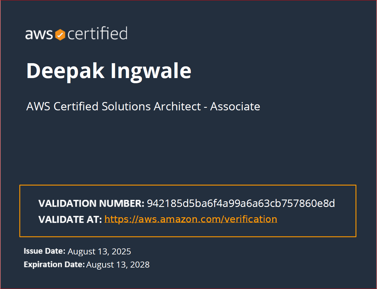I highly recommend Deepak Ingwale for his exceptional expertise in Java J2EE API design and deep AWS integration knowledge. His ability to architect scalable, high-performance solutions while adhering to best practices has been instrumental in our project's success. He demonstrated strong problem-solving skills, clear communication, and a collaborative approach, ensuring seamless alignment between technical and business goals. His AWS proficiency further enhanced our system's reliability and cost-efficiency. Any team would benefit greatly from his technical leadership.