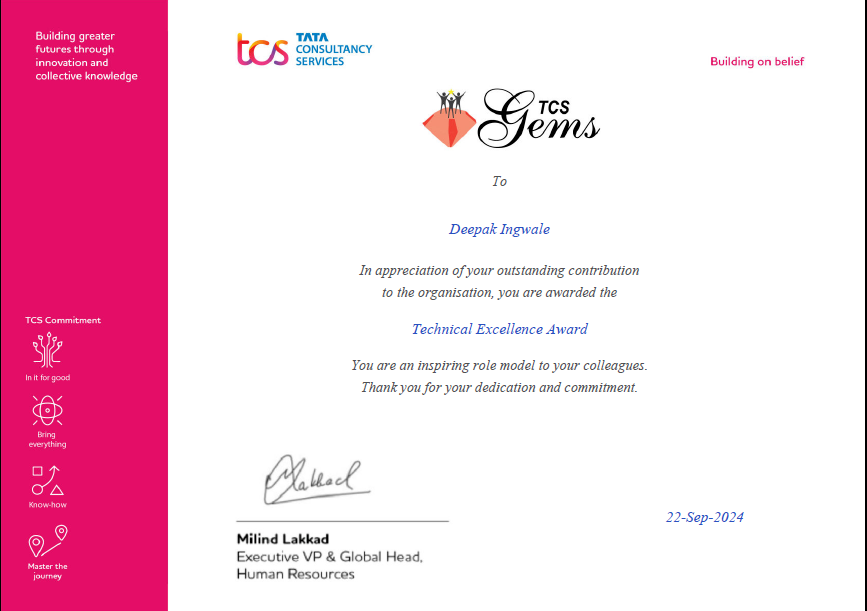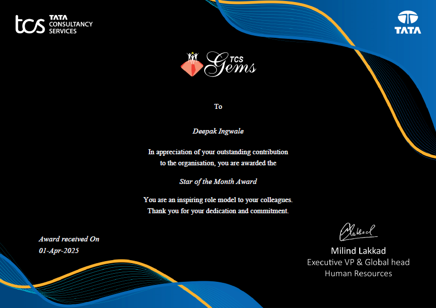 With expertise in a variety of programming languages and frameworks, I have delivered successful products in diverse industries, from mobile apps to enterprise solutions. Demonstrated commitment to professional growth through continuous learning, earning certifications from leading platforms like within TCS or external learning platforms including udemy , linkedin, and winning Awards from employers and Governing Bodies. Passionate about staying at the forefront of technology, I have been recognized in Media/News, showcasing a blend of technical proficiency and innovative problem-solving.